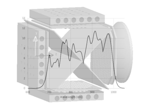 Near-infrared spectroscopy, material characterization or microscopy require infrared light sources covering a broad spectral range. We are developing light sources in the NIR range that achieve high light output through the superposition of various LED emitters and remote phosphor technologies.
